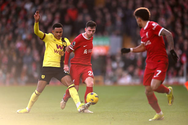 I 3-1-segern mot Burnley gjorde Andy Robertson sin första start sedan han ådrog sig en axelskada i oktober.