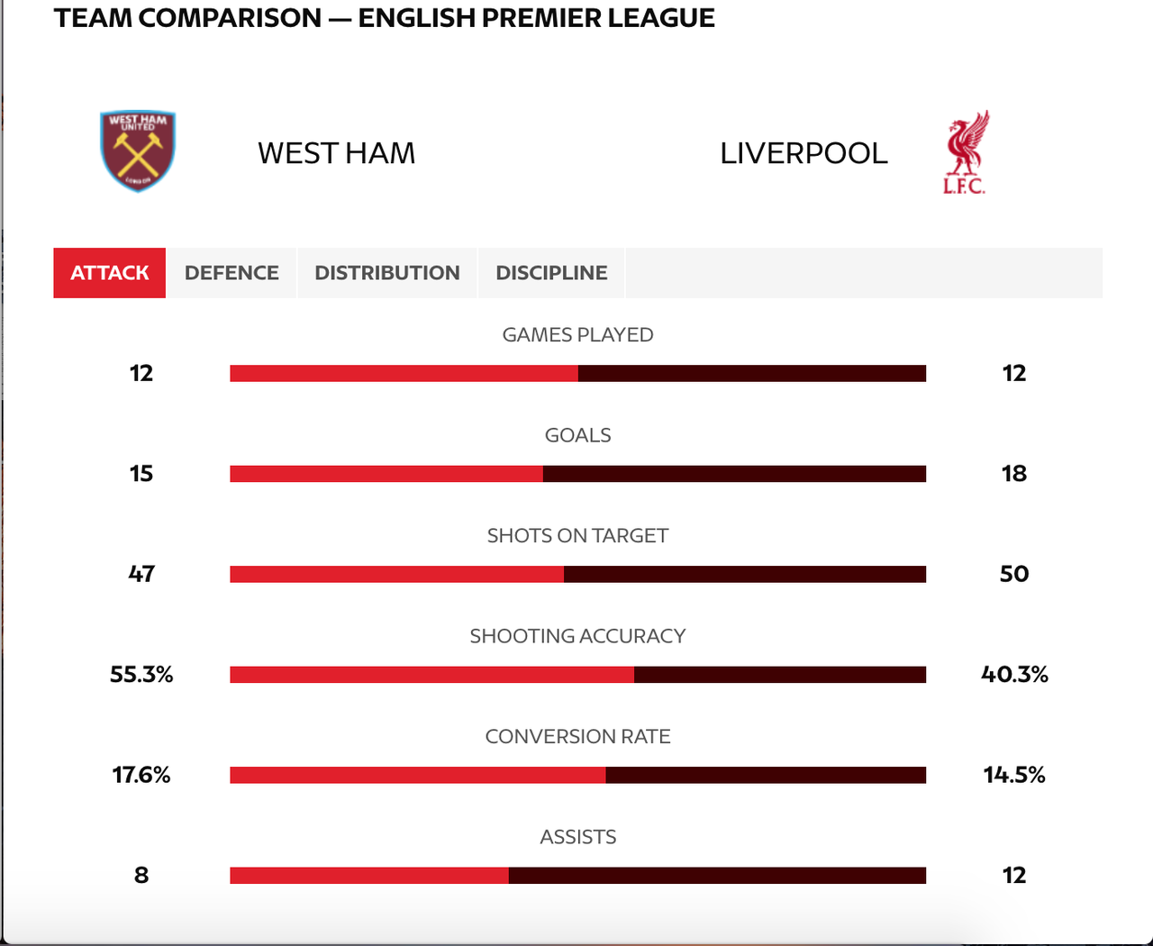 ⚽️ The Reds har förlorat endast en av de 18 senaste ligamatcherna mot West Ham (14 segrar, tre kryss), en 3-2-förlust i november 2021.