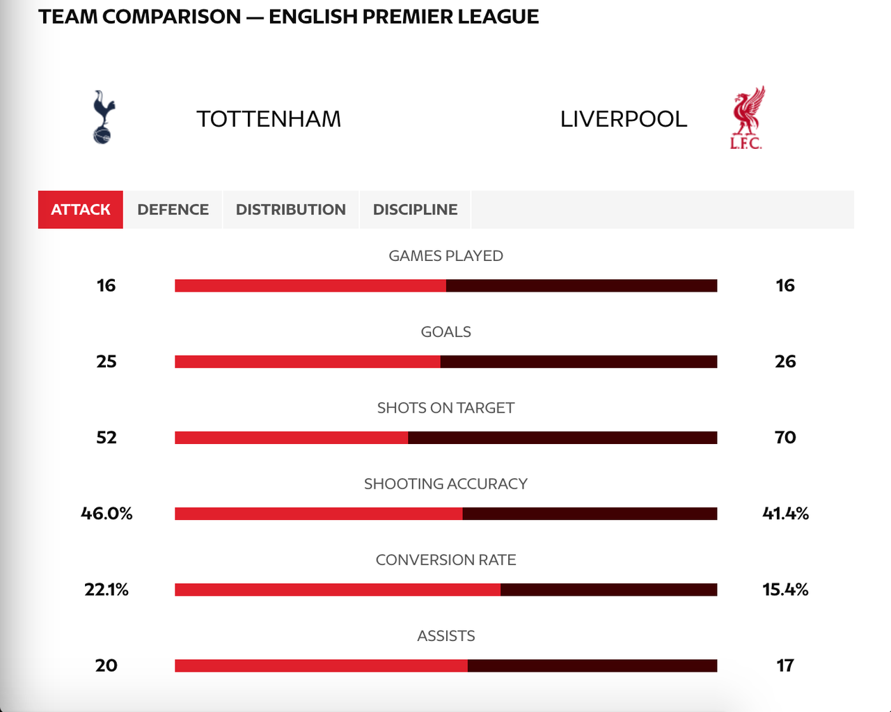 ⚽️ Liverpool har gjort mål i 25 av de 26 senaste ligamatcherna mot Tottenham. För tillfället har de en svit på 19 matcher. Endast mot Arsenal (20) har de en längre svit i ligan.