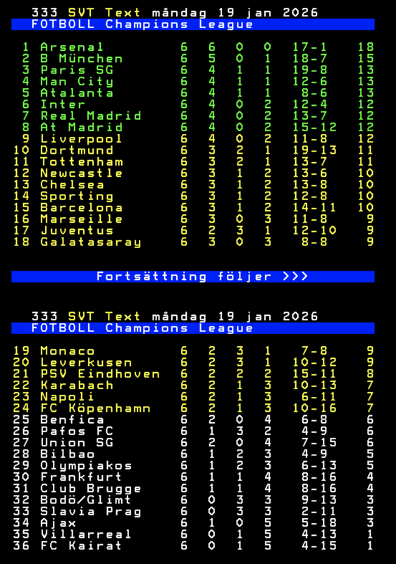 Just nu är Arne Slots lag nummer nio, bakom Atletico Madrid, Real Madrid och Inter på målskillnad, så chanserna för att åtminstone klara play off är alltså mycket goda.