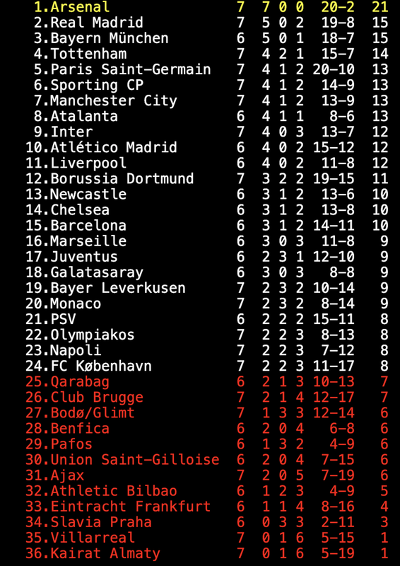 Den största överraskningen stod Bodö/Glimt för, som förnedrade stjärnspäckade Manchester City med 3-1 i två minusgrader på Aspmyra. Senare på kvällen förlorade Inter med 1-3 hemma mot Arsenal och Sporting CP nitade regerande mästarna PSG med 2-1.